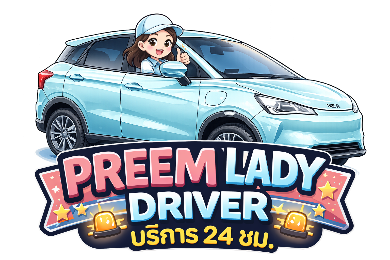 เดินทางด้วยรถ EV สีฟ้าพาสเทลสุดน่ารัก